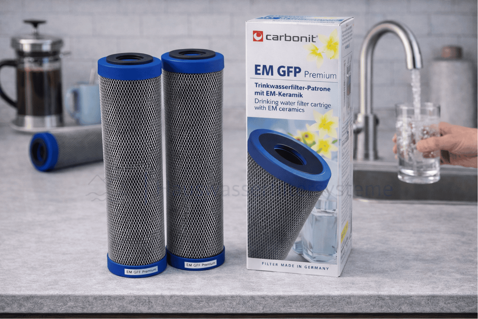 Carbonit GFP Premium EM Wasserfilterpatronen Set | 9 3/4” Aktivkohleblock mit EM-Keramik