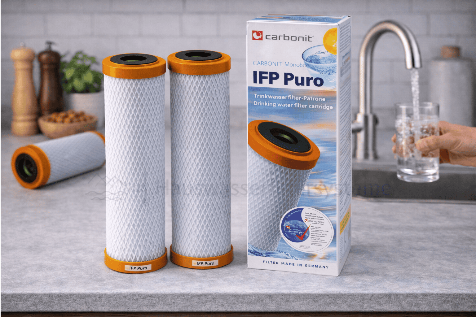 Die IFP Puro Filterpatronen erfüllen die Anforderungen an geprüfte Sicherheit nach deutschem Lebensmittelrecht und werden umweltfreundlich unter Verwendung überwiegend nachwachsender Rohstoffe hergestellt. Sie bieten damit eine leistungsstarke Kombination aus Feinfiltration, hygienischer Sicherheit und geschmacklicher Verbesserung des Trinkwassers.