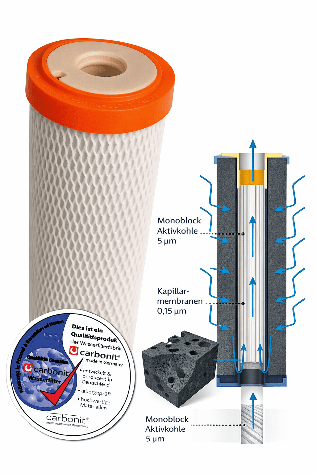 - Aktivkohleblock & Kapillarmembranen