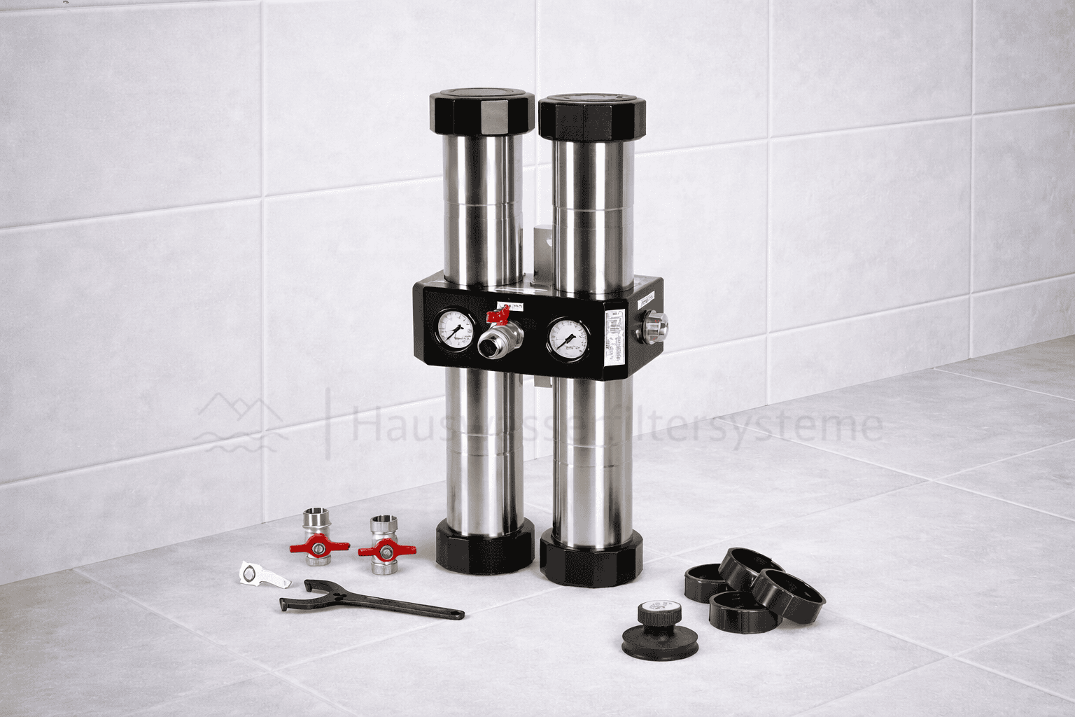 - Komplette Filtereinheit mit Wandhalterung und Manometern für eine einfache und sichere Installation.