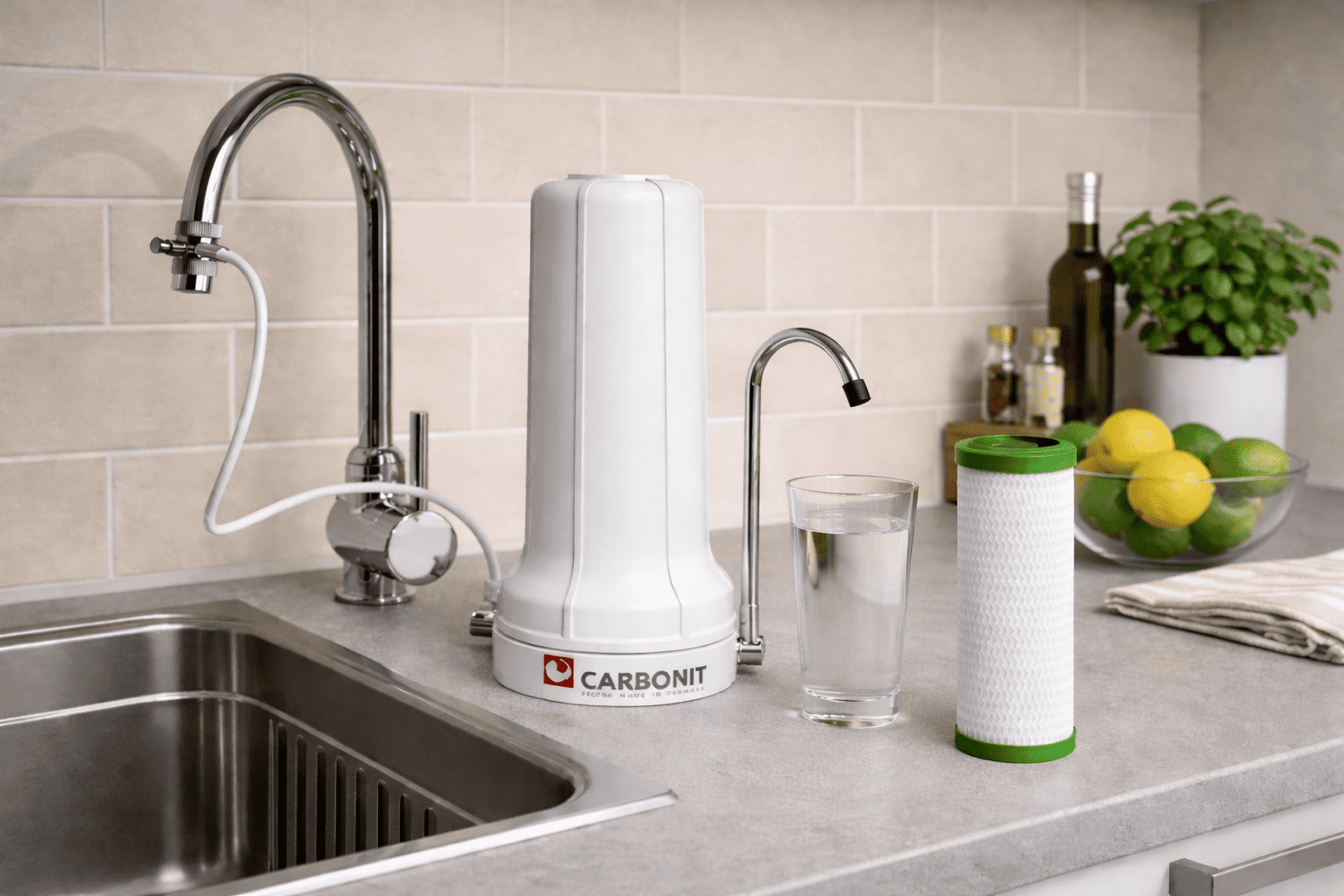Der Carbonit SANUNO Classic Auftischfilter mit Aktivkohlefilter ist eine
